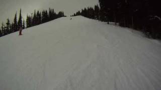 A brief demonstration of the GS carving capabilities of the mid-fat (94mm waist) Volkl Mantra skis.