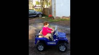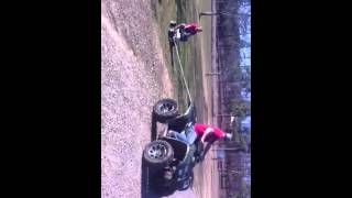 Me pulling a friend on a toy four wheeler with a real four wheeler......his didn\'t hold up to the pressure!!